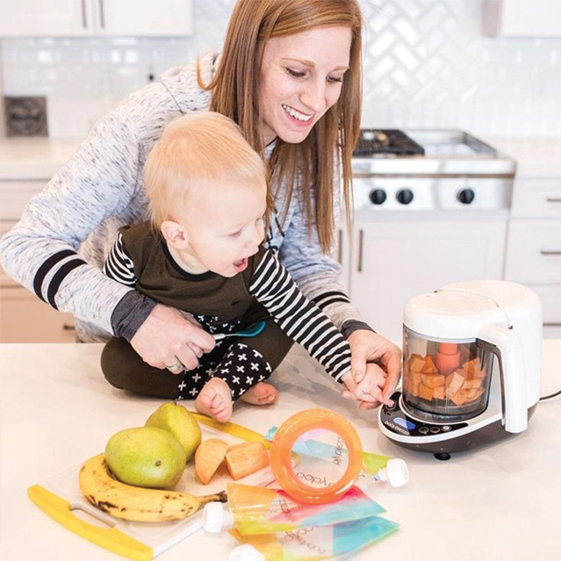 ظرفیت مناسب دستگاه امکان تهیه چند وعده غذا را به طور همزمان فراهم می‌کند. به کمک کیسه‌های ذخیره غذای همراه محصول و قیف مخصوص، می‌توانید پوره آماده شده را به‌راحتی بسته‌بندی و برای استفاده‌های بعدی نگهداری کنید. این ویژگی برای والدینی که زمان محدودی دارند بسیار کاربردی است.